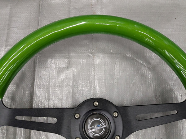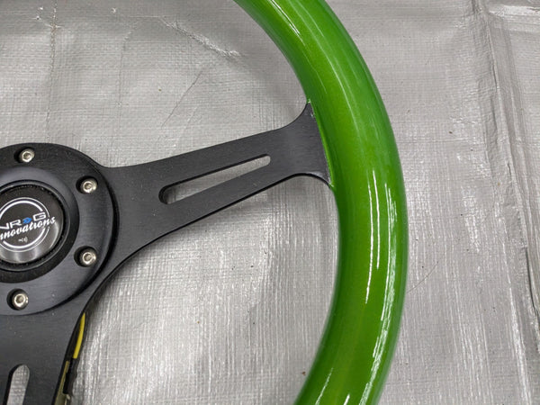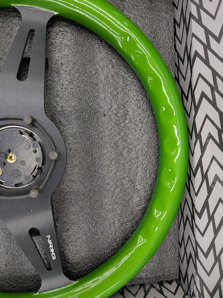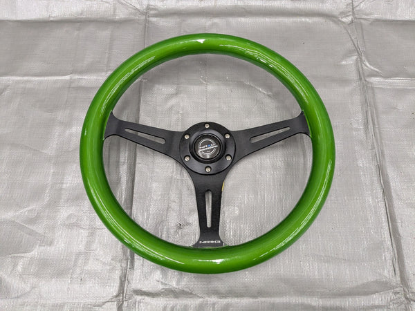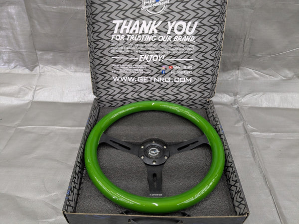 NRG Steering Wheel Green Classic Wood Grain 3 Spoke Black Center